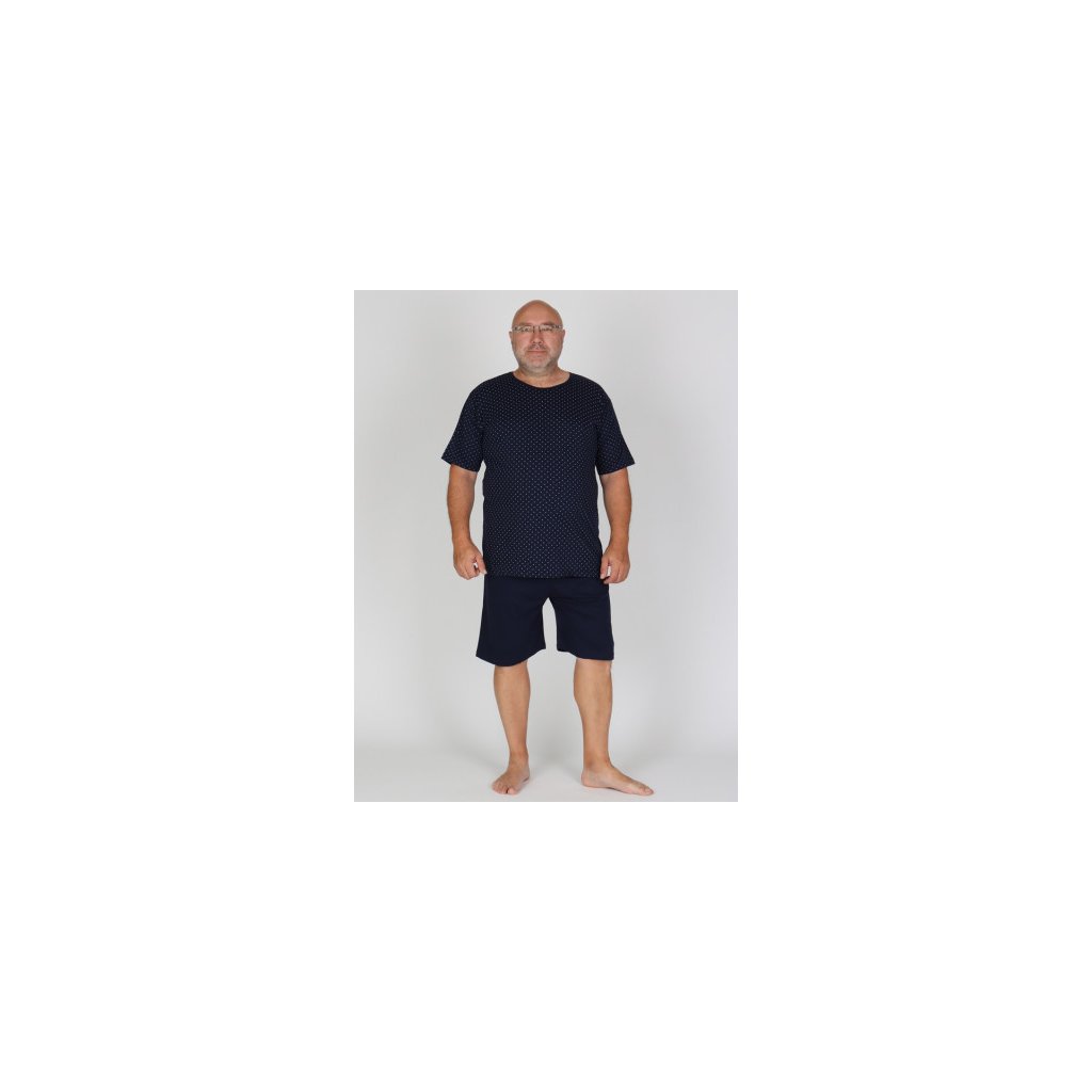 I pro pořádné chlapy máme pyžama! Pánské krátké pyžamo P BIGGER v nadměrných velikostech se skládá z trika s drobným potiskem a jednobarevných krátkých kalhot.