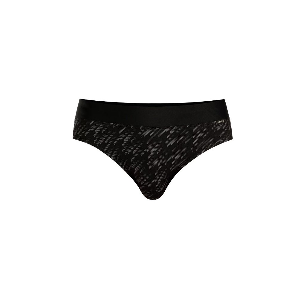 Středně vysoké. Široká guma vevnitř se šňůrkou na stažení. Přední díl podšitý. Střih: M24 72% Polyamid + 28% Elastan Tisk + černá 48, 50, 52, 54, 56, 58Doplňkové parametry