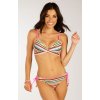 Boční kostice. Ozdobné překřížení na předním díle. Zapínání na zádech. Nastavitelná ramínka. Střih: P32 85% Polyamid + 15% Elastan Tisk + 333 neon růžová 36, 38, 40Doplňkové parametry