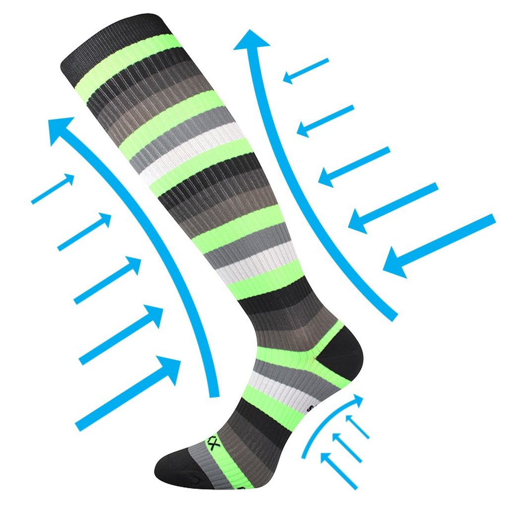 Podkolenky kompresní MULTIX pruhované neon zelené
