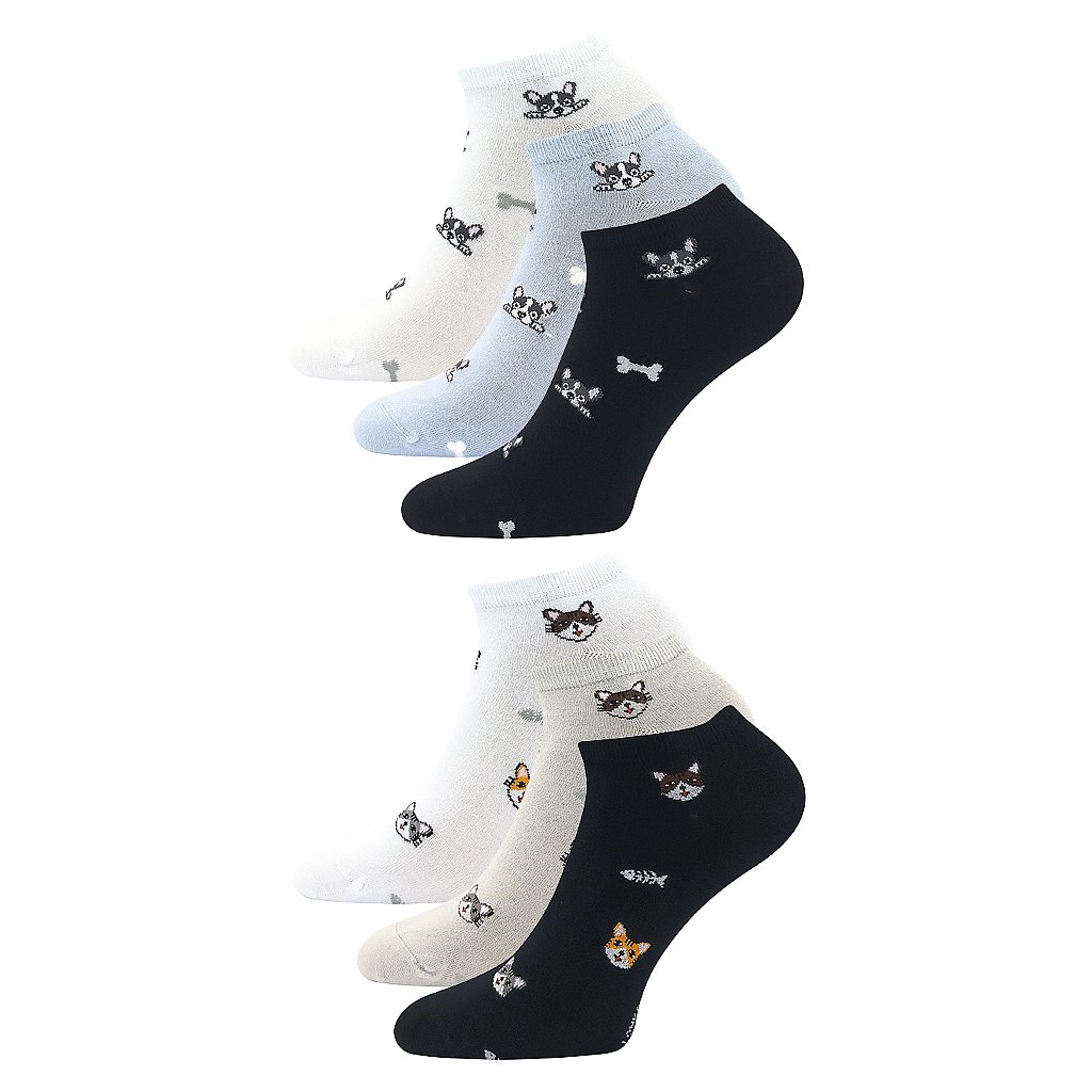 Dámské bambusové ponožky Lonka® BIBIANA jsou dámské nízké ponožky pro každodenní použití. Roztomilé motivy pejsků nebo kočiček se Vám budou líbit. Bambusová viskóza je přírodní materiál s přirozenými antibakteriálními a antialergickými vlastnostmi, jemné a hebké vlákno je příjemné na omak i k pokožce, dobře pohlcuje vlhkost. Kvalitní ponožky mají díky 200 jehlovému úpletu jemný a hladký povrch. Špice je uzavřena řetízkováním, takže nikde netlačí. Výhodné balení 3 párů ponožek obsahuje mix barev.