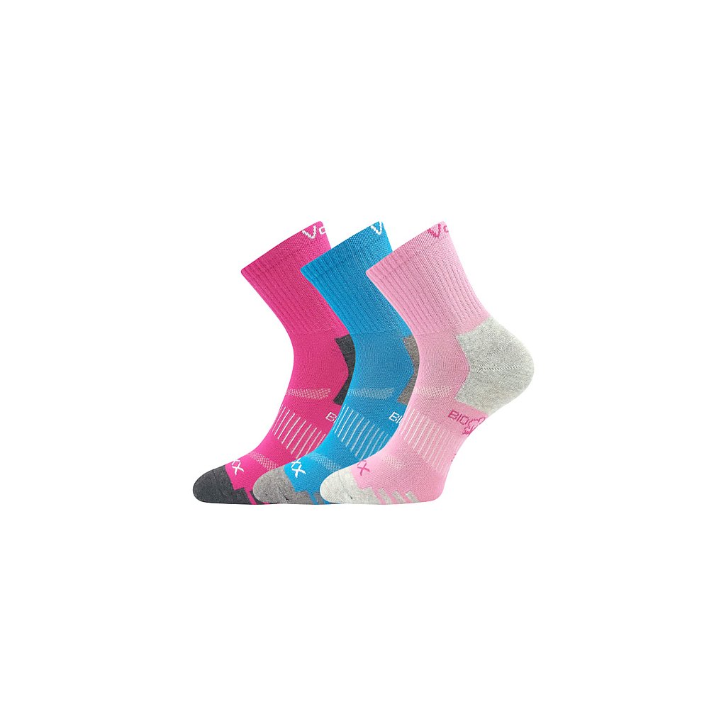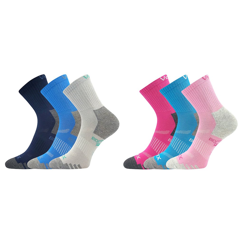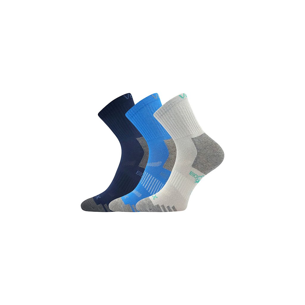 Dětské sportovní ponožky VoXX® BOAZIK jsou barevné ponožky s vysokým podílem BIO bavlny. Biobavlna je čistě přírodní materiál, který neobsahuje syntetické substance, je prodyšnější a jemnější na omak. Ponožky výborně sají pot, jsou příjemné na nošení a díky elastickému pruhu na nártu se nepřetáčí a drží na svém místě. Prodyšné zóny na nártu skvěle odvádí vlhkost, volný lem je pružný, jemný a nestahující. Barevné kombinace v barvách pro kluky nebo holky nabízíme ve výhodném balení 3 párů. Slabé ponožky VoXX® můžete nosit po celý den, jsou v teplotní třídě A od +10°C do +35°C.