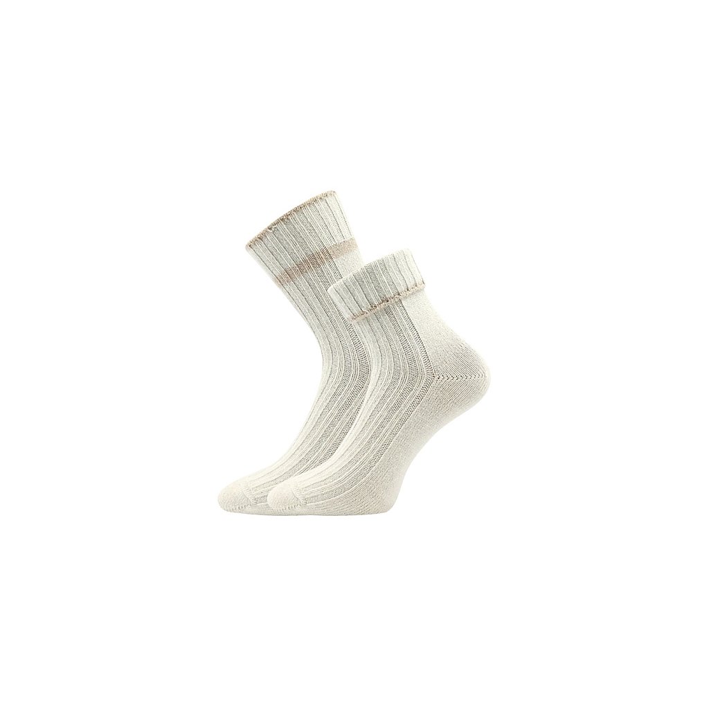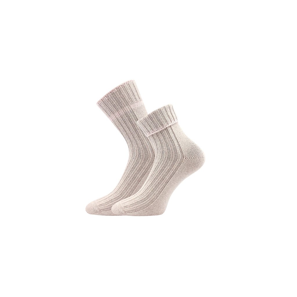 Dámské silné ponožky VoXX® CIVETTA jsou upletené materiálů hřejivá merino vlna a luxusní kašmír. Díky tomuto materiálu jsou tyto kašmírové ponožky velmi hebké, jemné, měkké a na omak velmi příjemné. Žebrovaný úplet je pohodlný a volný lem nohu nepříjemně nestahuje. Ponožky VoXX můžete nosit natažené nebo si je můžete ozdobně ohrnout. Teplotní třída je C, bez obav je můžete nosit v rozmezí od -20°C do +5°C.