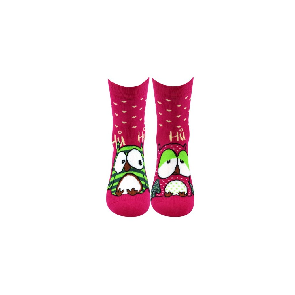 Ponožky dámské celofroté PRUHANA 12 se sovičkami MAGENTA (3 páry)