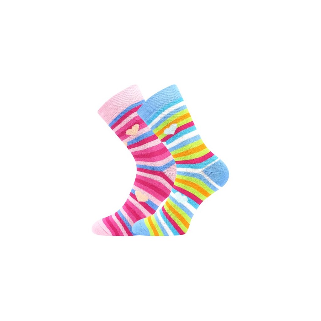 Dámské silné ponožky Boma® PRUHANA 2 jsou z teplého bavlněného froté. Jemné pruhy v pastelových barvách doplňují něžná srdíčka. Vysoký podíl bavlny je doplněný o pružný elastan.