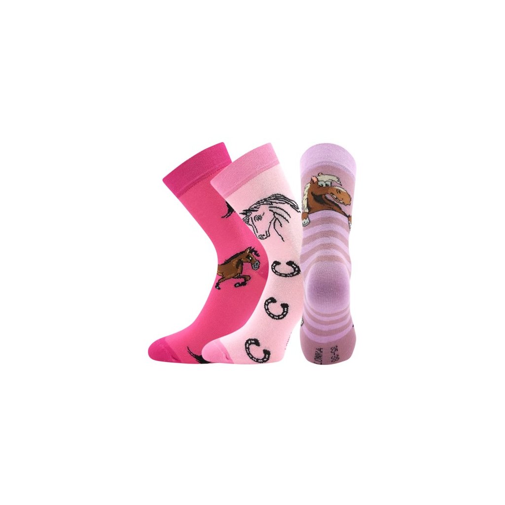 Dívčí obrázkové ponožky Lonka® HORSIK jsou slabé ponožky z přírodní bavlny s motivem koníků a podkoviček.