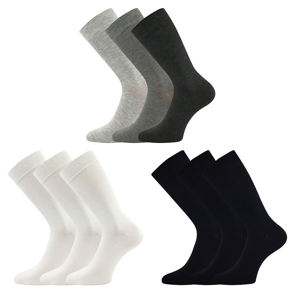 Slabé bambusové ponožky Boma® EKOL jsou klasické, vyšší příjemné tenké ponožky z hladkého úpletu s jemným nestahujícím pigue lemem. Použitý materiál bambus (bambusová viskóza) je přírodní materiál s úžasnými vlastnostmi. Má antialergické vlastnosti, výborně saje vlhkost, sám o sobě je antibakteriální a krásně se leskne. Tenké společenské ponožky jsou vhodné k pánskému obleku, ale i pro každodenní nošení. Prodáváme v ekonomicky výhodném packu po 3 párech - bez zbytečných etiket, spojené bez sešití pouze papírovým přebalem.