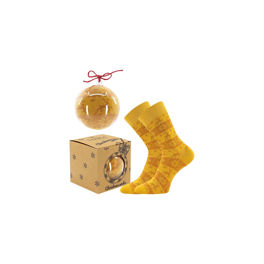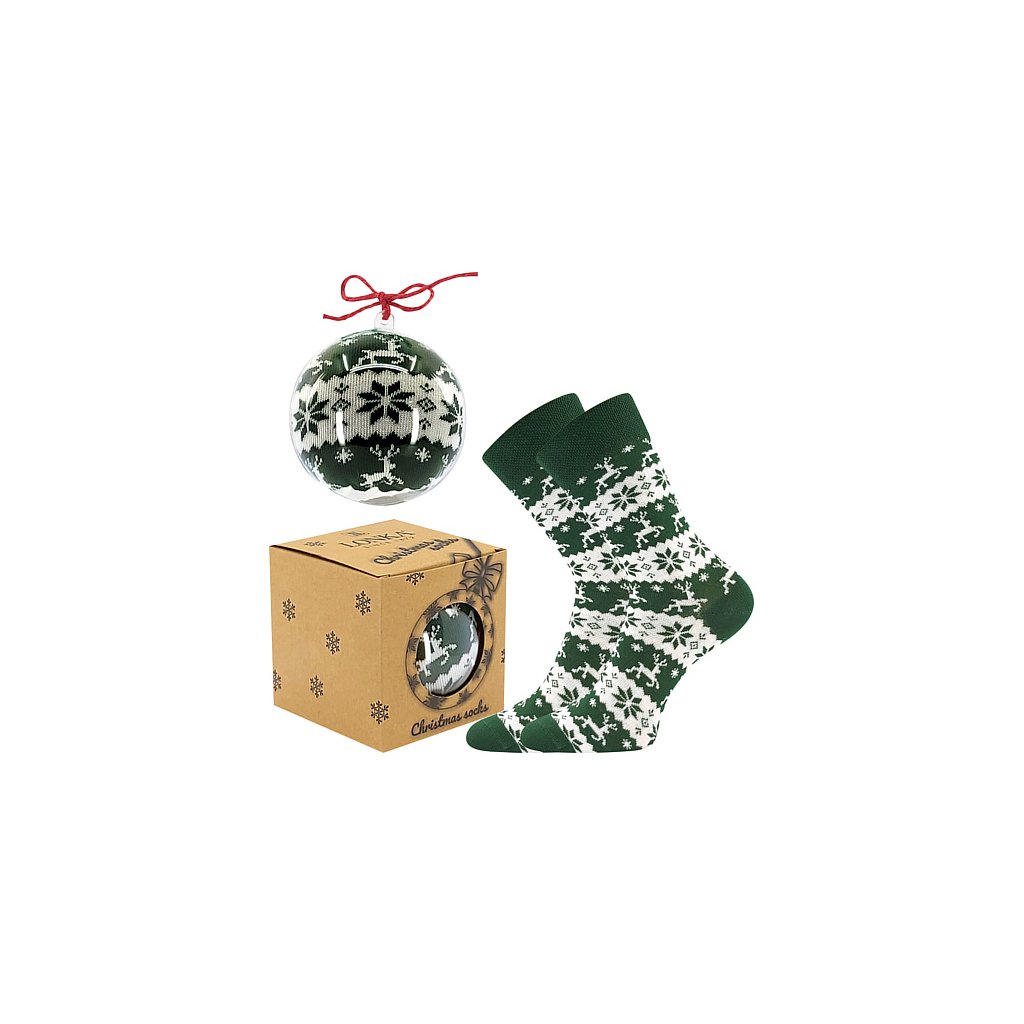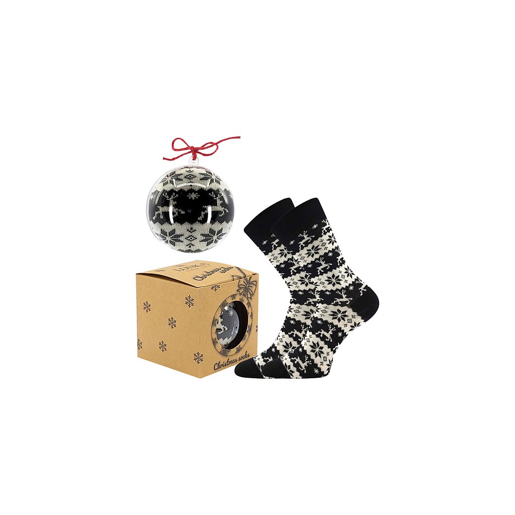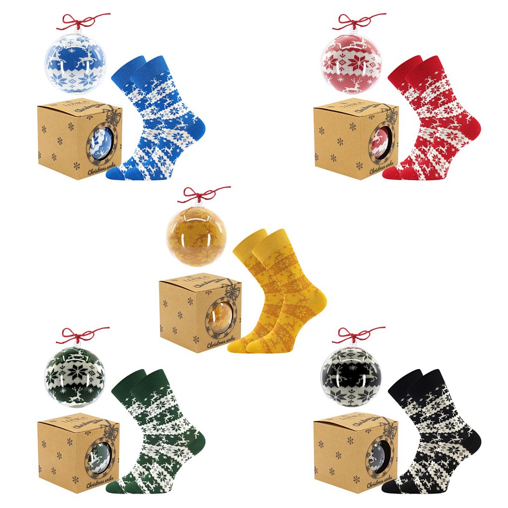 - dětské, dámské a pánské ponožky s vánočním motivem zabalené jako vánoční ozdoba, s jemným a nestahujícím pique lemem, originální dárek pro každého
