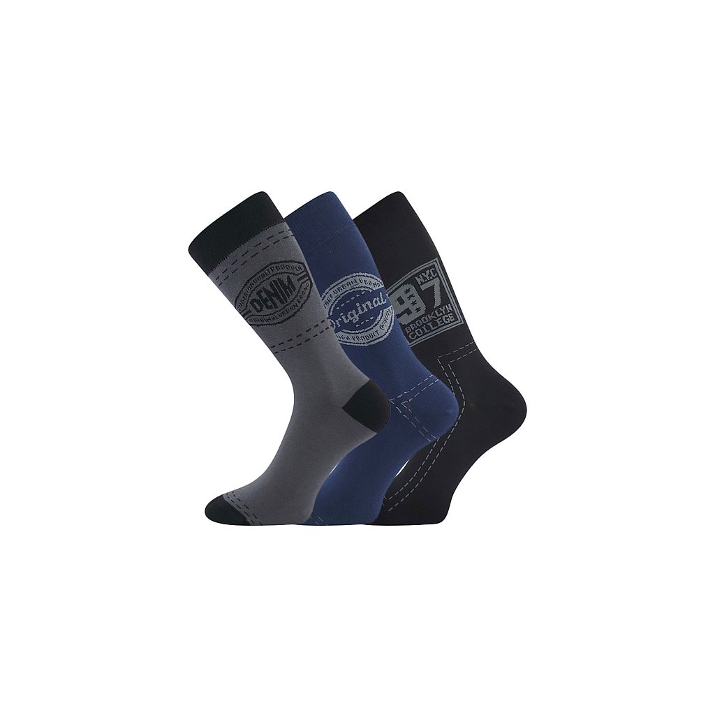 Pánské volnočasové ponožky Boma® KUBA mají klasickou výšku a stylový design. Jeans a denim motivy na bavlněných ponožkách s elastanem v decentních tmavých barvách můžete nosit po celý den, jemný svěr lemu totiž nikde neškrtí. Slabé stylové ponožky, které si oblíbíte.