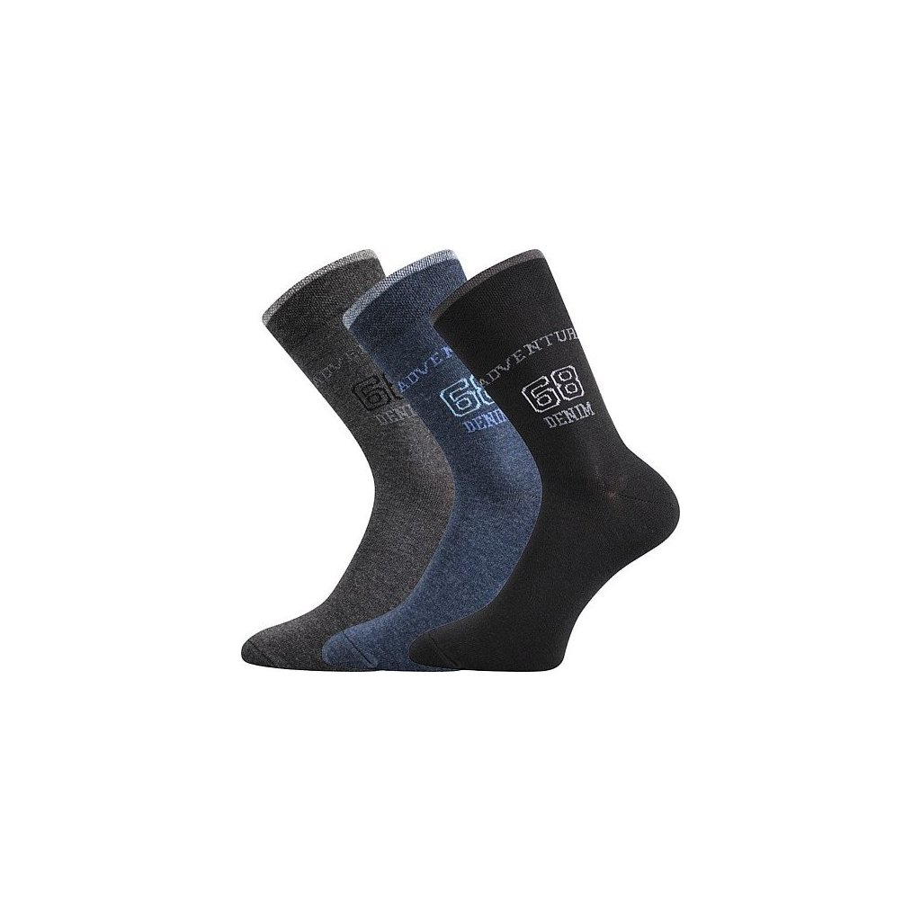 Pánské volnočasové ponožky Boma® KUBA mají klasickou výšku a stylový design. Jeans a denim motivy na bavlněných ponožkách s elastanem v decentních tmavých barvách můžete nosit po celý den, jemný svěr lemu totiž nikde neškrtí. Slabé stylové ponožky, které si oblíbíte.