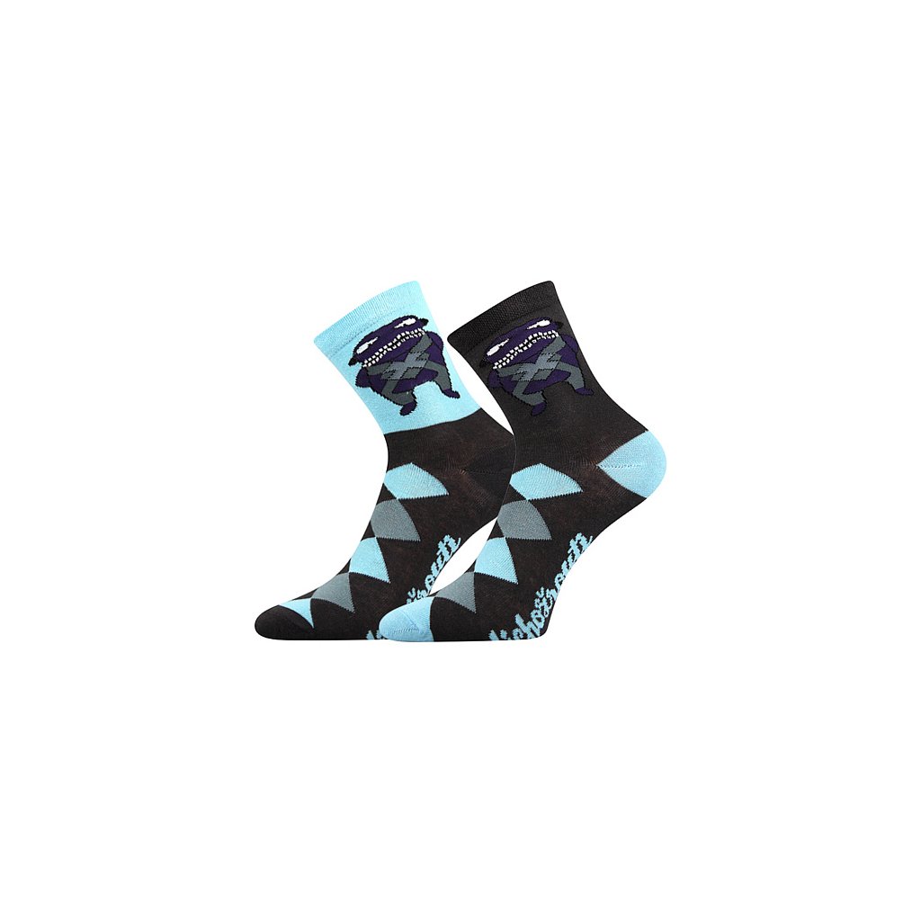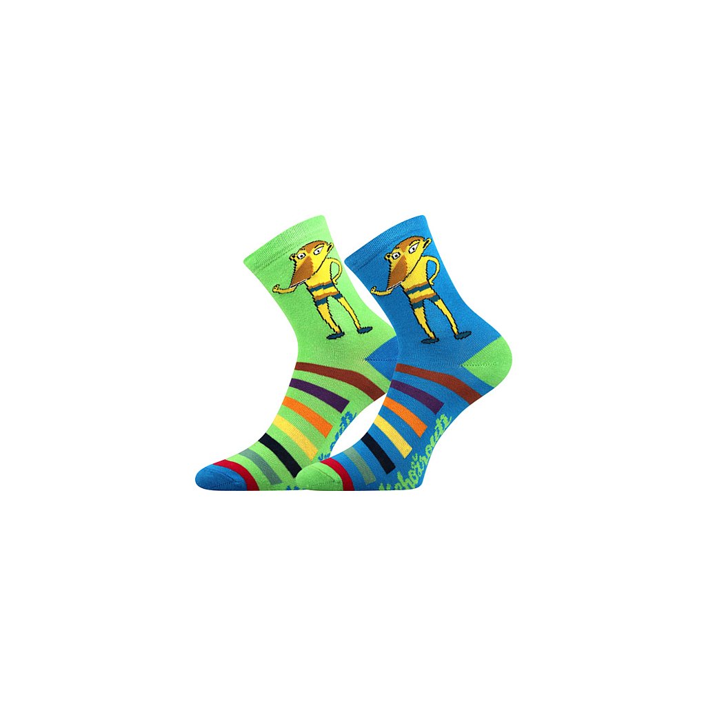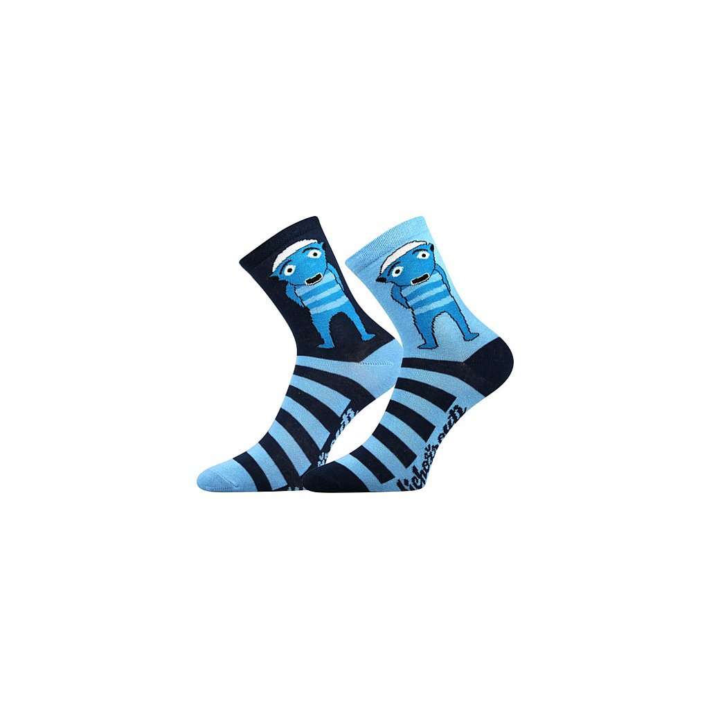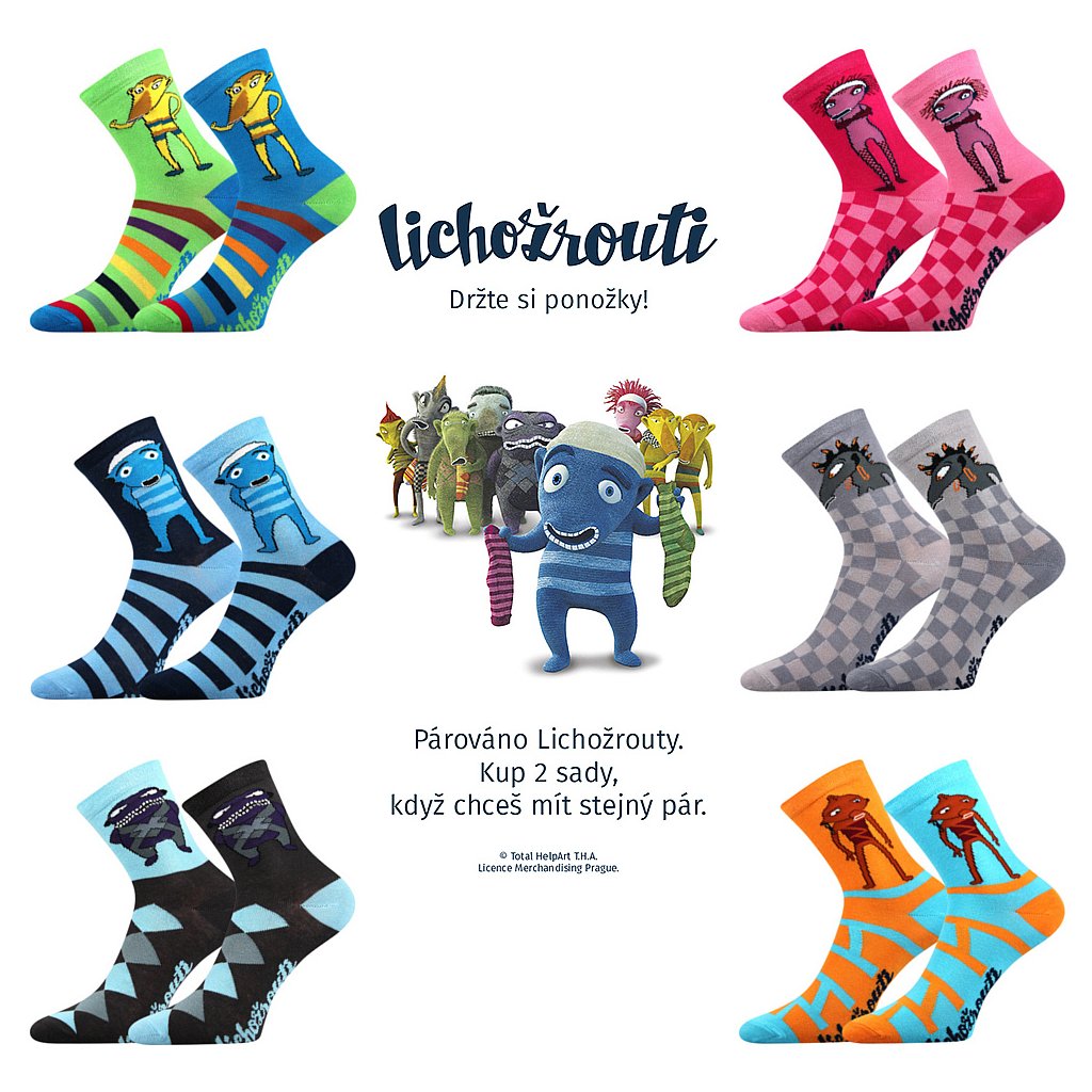 Dětské ponožky Boma® LICHOŽROUTI K jsou klasické bavlněné ponožky lichožroutské bandy, která miluje liché ponožky. Hihlík, Padre, Kudla, Ramses, Rezek a Žiletka si ponožky seskládali podle sebe, takže pokud budete chtít mít stejný pár, pořiďte od každého dvě sady.