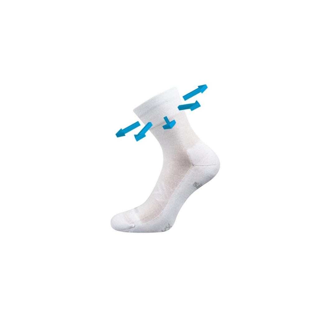 Sportovní ponožky VoXX® ESENCIS mají zesílené froté chodidlo, které je navíc extra vyztužené proti opotřebení. Elastická zóna na nártu zabraňuje přetočení ponožky v obuvi.