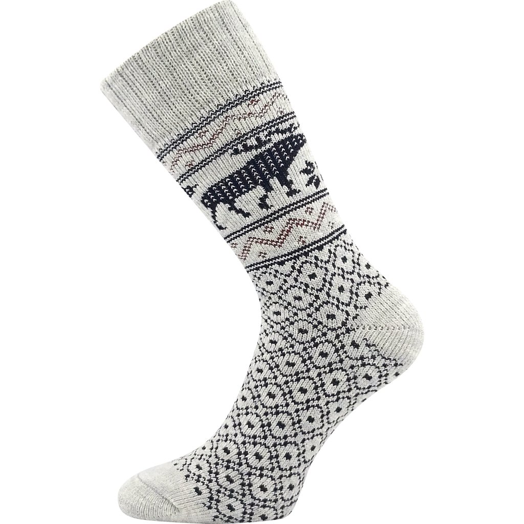 Ponožky pánské silné HUGO s norskými motivy a obrázky SOBA šedé