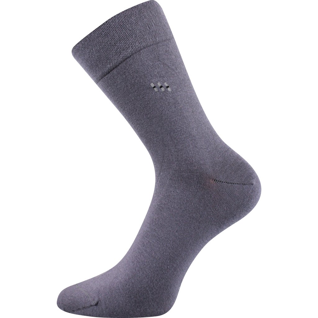 Pánské společenské ponožky Lonka® DIPOOL mají extra volný nestahující lem, vhodný i pro oteklé nohy. Oblekové ponožky mají velmi decentní kotníkový vzor.