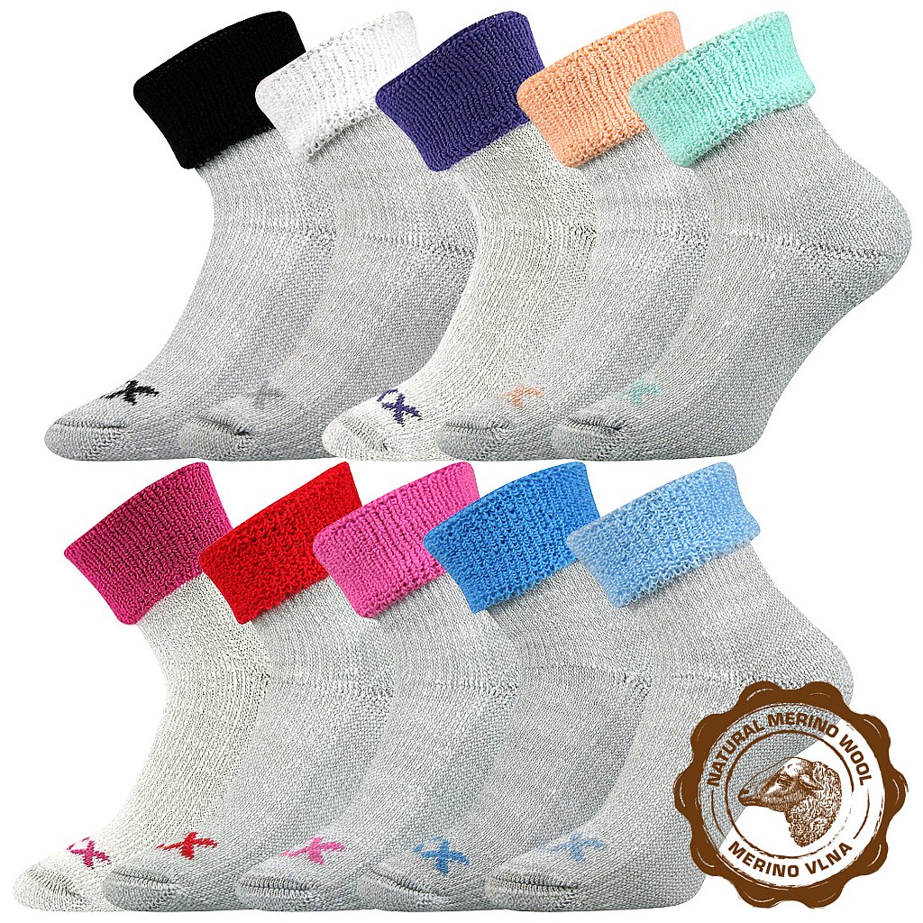 - dámské froté ponožky s barevným ohrnovacím lemem, merino vlna, teplotní třída: C