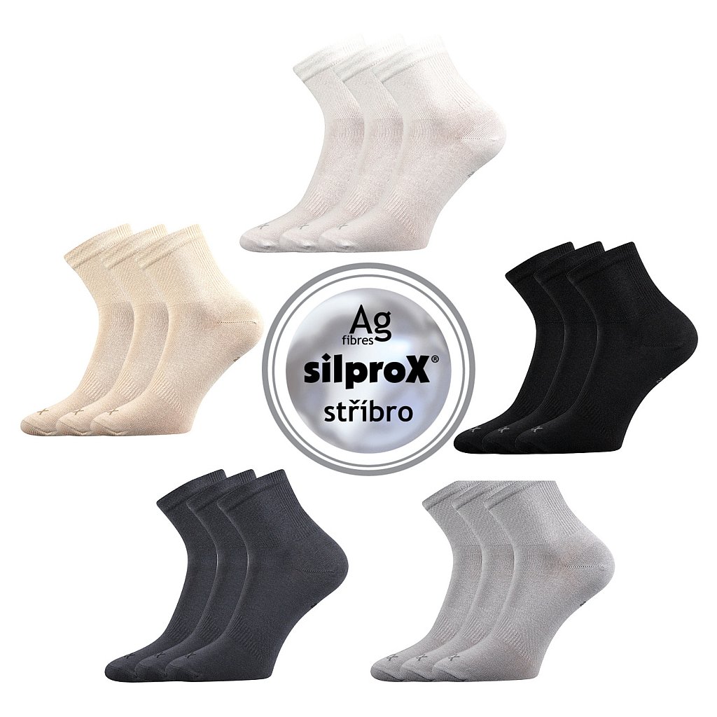 - dámské-pánské slabé sportovní ponožky, antibakteriální ochrana ionty stříbra v materiálu silproX, elastický pruh na nártu zabraňující přetočení, jemný svěr lemu, teplotní třída A