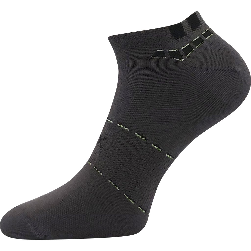 Pánské krátké slabé ponožky VoXX® REX 16 jsou sportovní ponožky, které se hodí jak na celodenní nošení, tak i na letní indoorové a outdoorové aktivity. Tenké ponožky s vyšším podílem bavlny pro dobrý odvod vlhkosti mají navíc prodyšnou zónu na nártu a jemný nestahující lem. Aby se v obuvi nepřetáčely, okolo nártu mají elastickou zónu, držící ponožky na svém místě. Slabé ponožky mají špici uzavřenou řetízkováním, takže nikde netlačí. Ponožky jsou dostupné v teplotní třídě A, vhodné do rozmezí teplot od +10°C do +35°C.