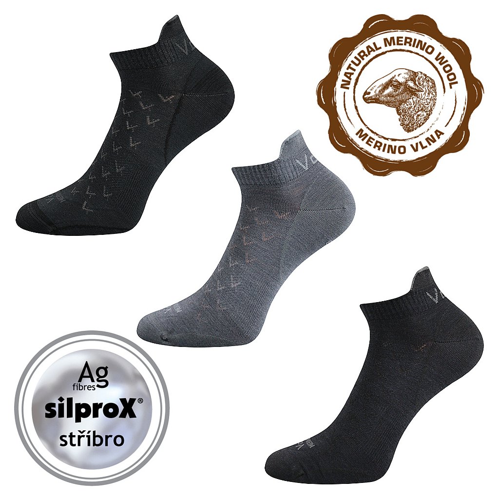 materiály: | vlna Merino - extra jemná ovčí vlna, jemný až hedvábný omak, termoregulační schopnosti, elastické, prodyšné, antibakteriální účinky, silproX® - speciálně vypředené polypropylenové vlákno s obsahem iontů stříbra, zabraňující vzniku zápachu a plísním |