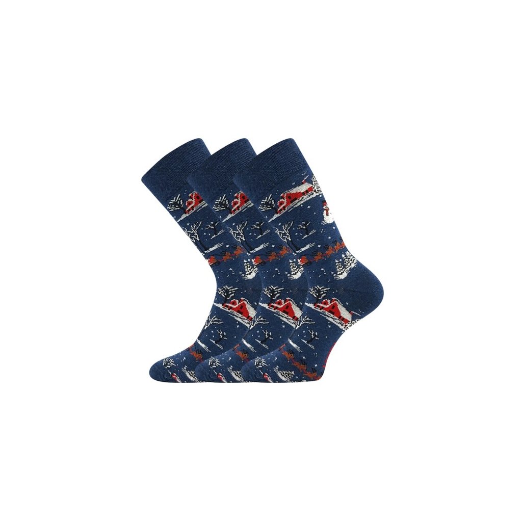 Ponožky slabé vánoční DAMER obrázkové se ZIMNÍ KRAJINKOU (3 páry)
