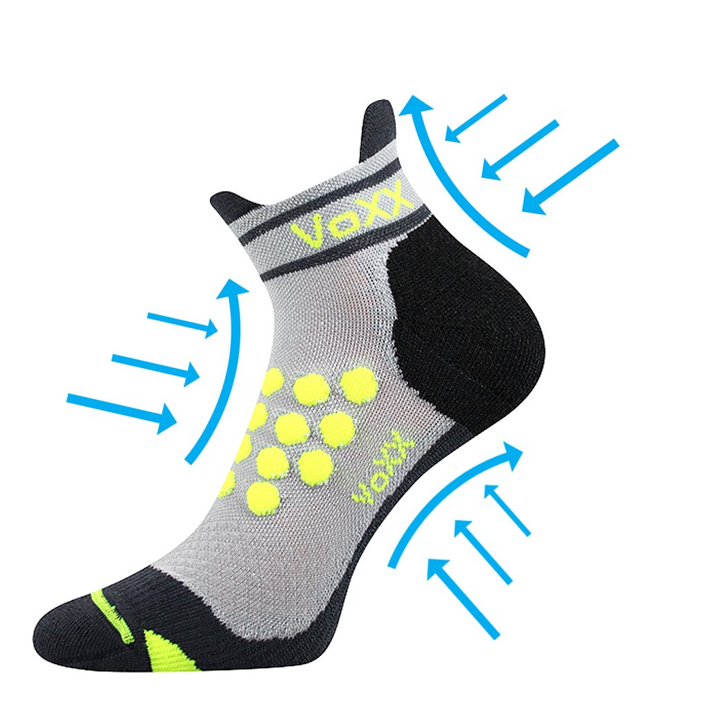 kompresní třída 1- dámské-pánské sportovní ponožky s vyvzorovanou patou a řetízkovanou špicí, speciální konstrukce zamezuje přetáčení v botě, anatomicky tvarované polstrované zóny brání vzniku otlaků a puchýřů, kompresní, napomáhají pevnějšímu držení a vyšší stabilitě kotníku, zapletením materiálu silproX s ionty stříbra zajišťuje antibakteriální ochrana a jemné polstrování materiálem DRYTEX zajistí maximální komfort a odvod potu při vysoké sportovní zátěži, teplotní třída: A
