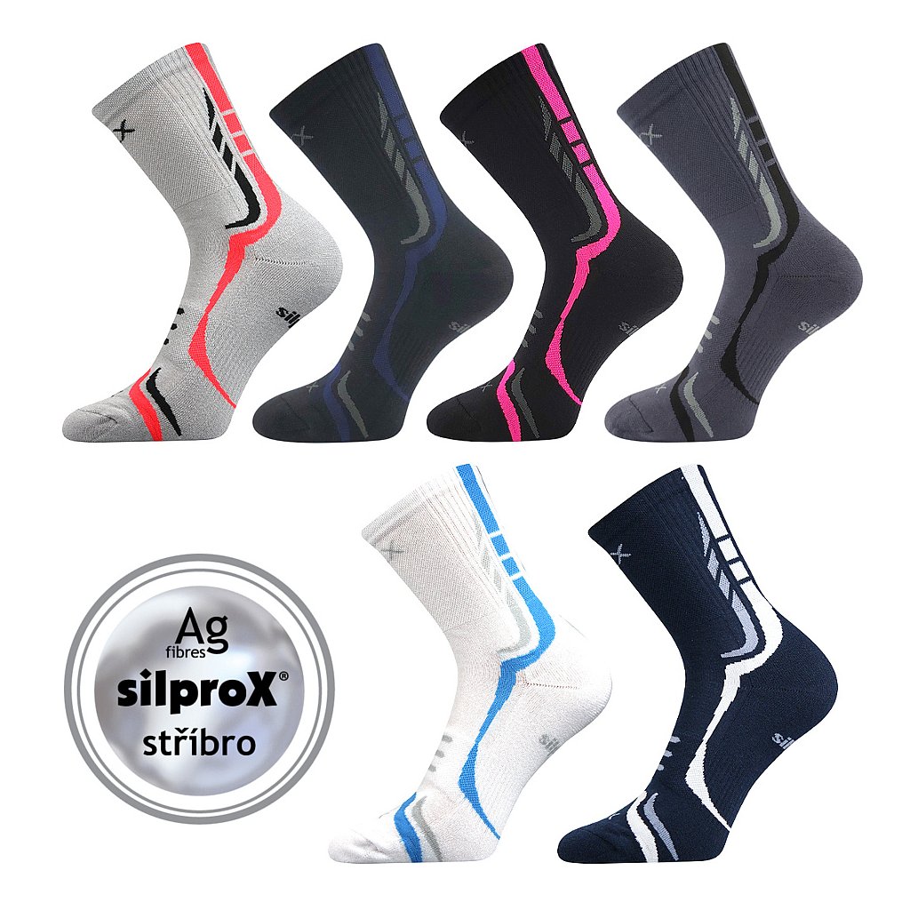 - dámské-pánské sportovní ponožky, 200 jehlový úplet, froté polstrované zóny, vysoká absorpce vlhkosti, elastické bandáže, materiál silproX s ionty stříbra, teplotní třída: BDoplňkové parametry