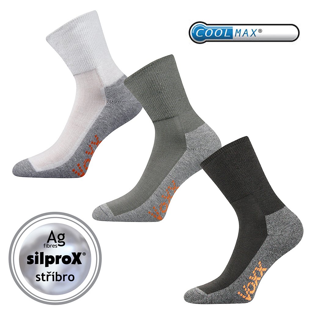 - dámské-pánské sportovní froté ponožky, vysoký odvod potu, extra polstrované chodidlo, materiál CoolMax, antibakteriální ochrana ionty stříbra v materiálu silproX, teplotní třída: ADoplňkové parametry