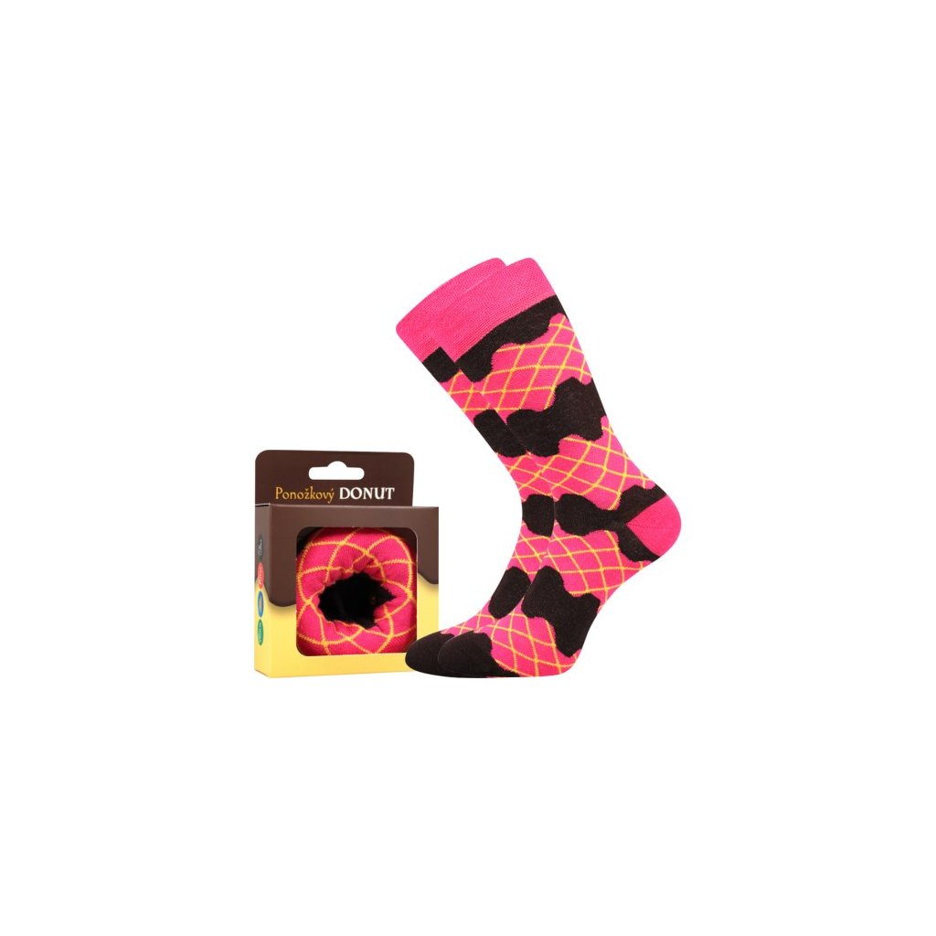 Ponožky vtipné DONUT v krabičce RŮŽOVÉ vzorované