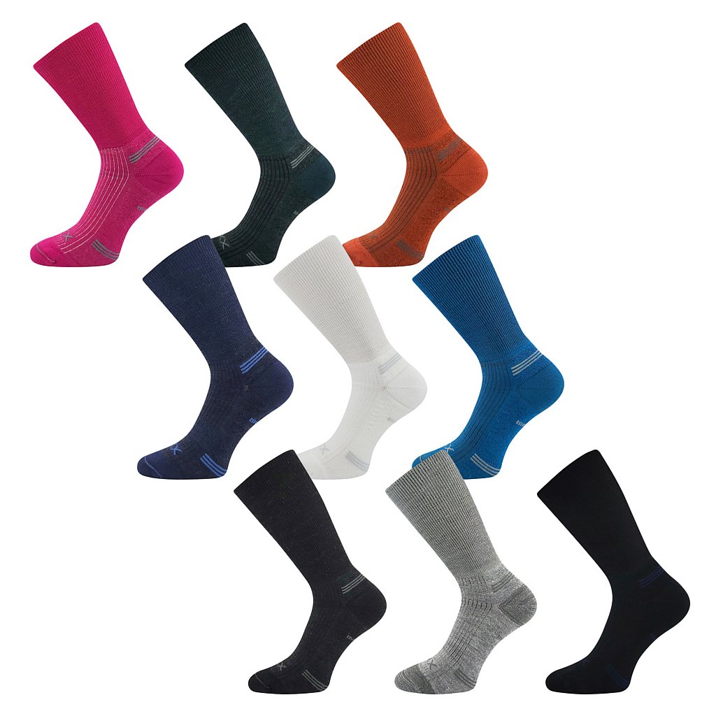 Speciální dámské a pánské outdoorové ponožky VoXX® mají jedinečný žebrovaný slabý lem, který je velmi pružný, nohu nestahuje, neškrtí a zaručuje jejich dobré prokrvení. Pata a špice je zesílená měkkým froté, špička je spojená plochým řetízkováním. Samotná ponožka je dvojitá, druhá ponožka je do vnější zapletená patentovanou technologií TWIN LAYER. Materiály merino vlna a polypropylen silproX® dokonale odvádí pot z vnitřní vrstvy, dvojitá ponožka má špičkové izolační vlastnosti, přirozenou antibakteriální ochranu posílenou ionty stříbra a hodí se tak na turistiku, outdoorové aktivity i celodenní nošení v rozmezí teplot od - 20°C do + 20°C, je v teplotní třídě B-C.