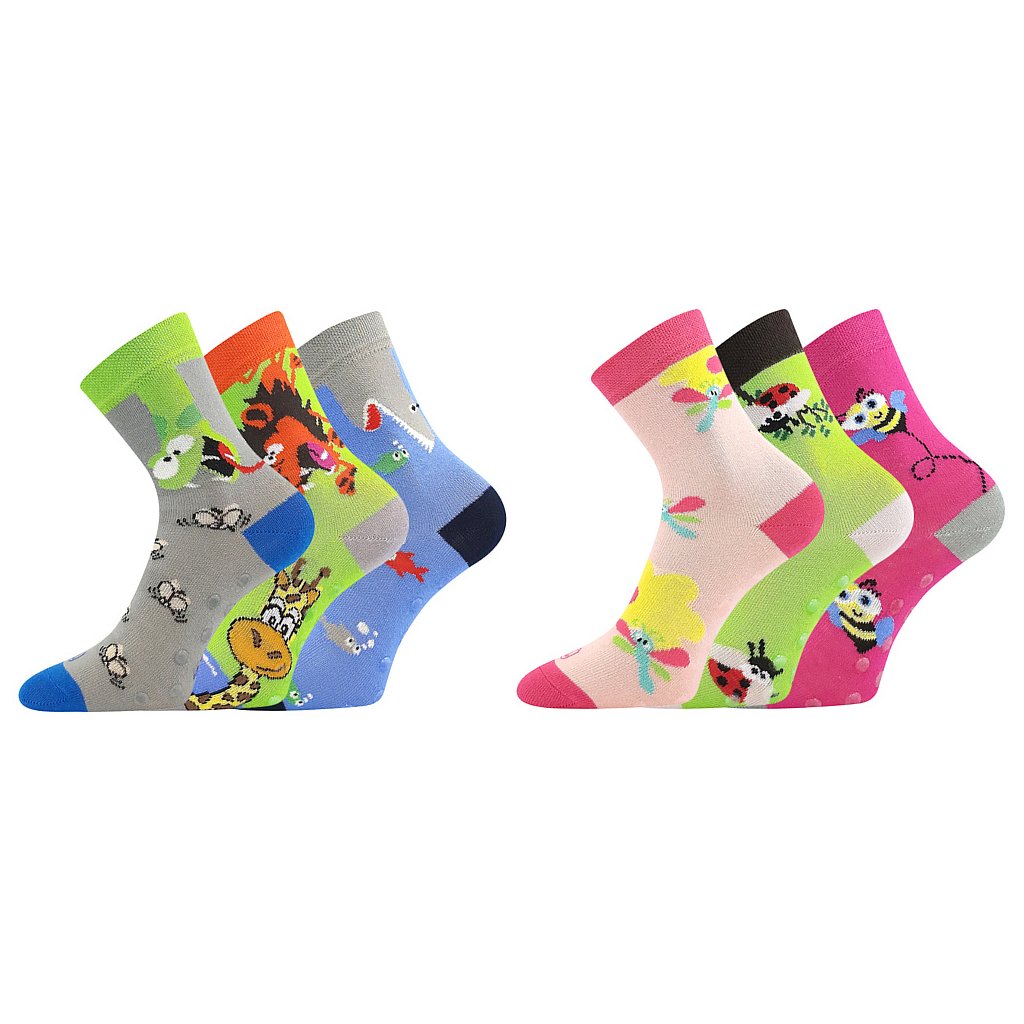 Dětské "trendy" módní ponožky s veselými obrázky zvířátek a hmyzu, díky elastanu perfektně sedí a drží tvar. Navíc s protiskluzným chodidlem ABS.