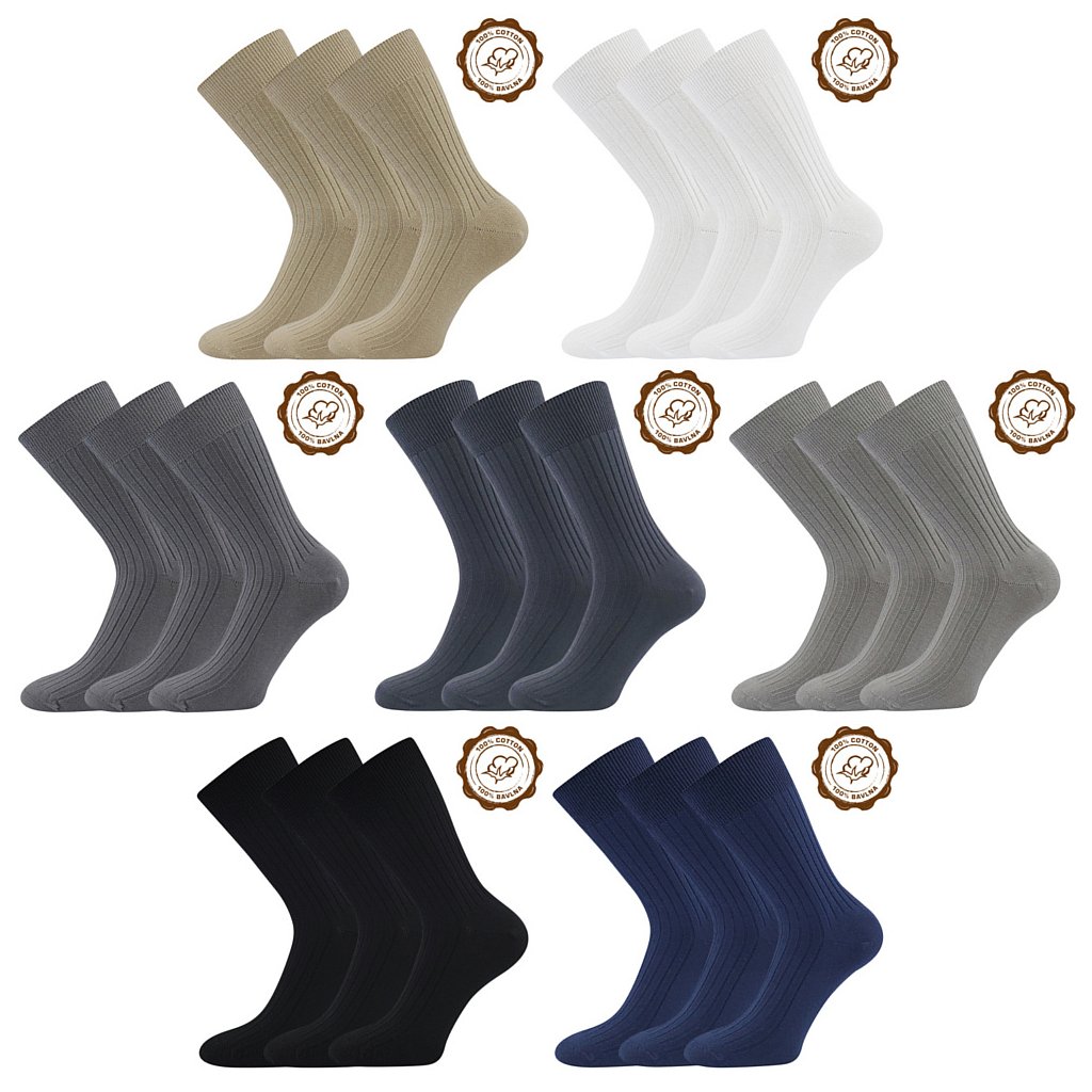 - pánské ponožky v žebrovaném vzhledu, s volným nestahujícím lemem ze 100% bavlny, řetízkovaná špice