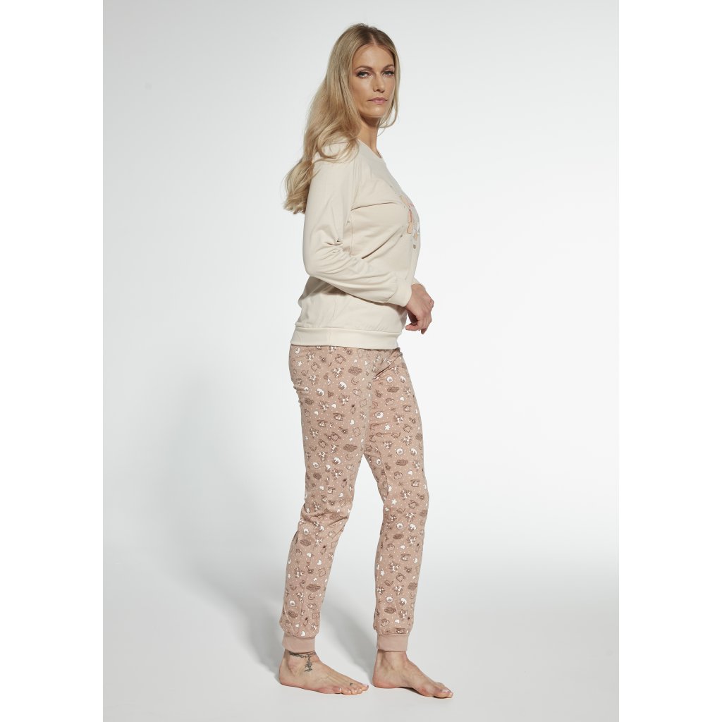 Dámské pyžamo- vyrobeno z vysoce kvalitní bavlny- tričko s dlouhým rukávem- zdobené barevným potiskem- dlouhé kalhoty ladící- nohavice a manžety zakončené lemem Složení: 100% bavlnaDoplňkové parametry