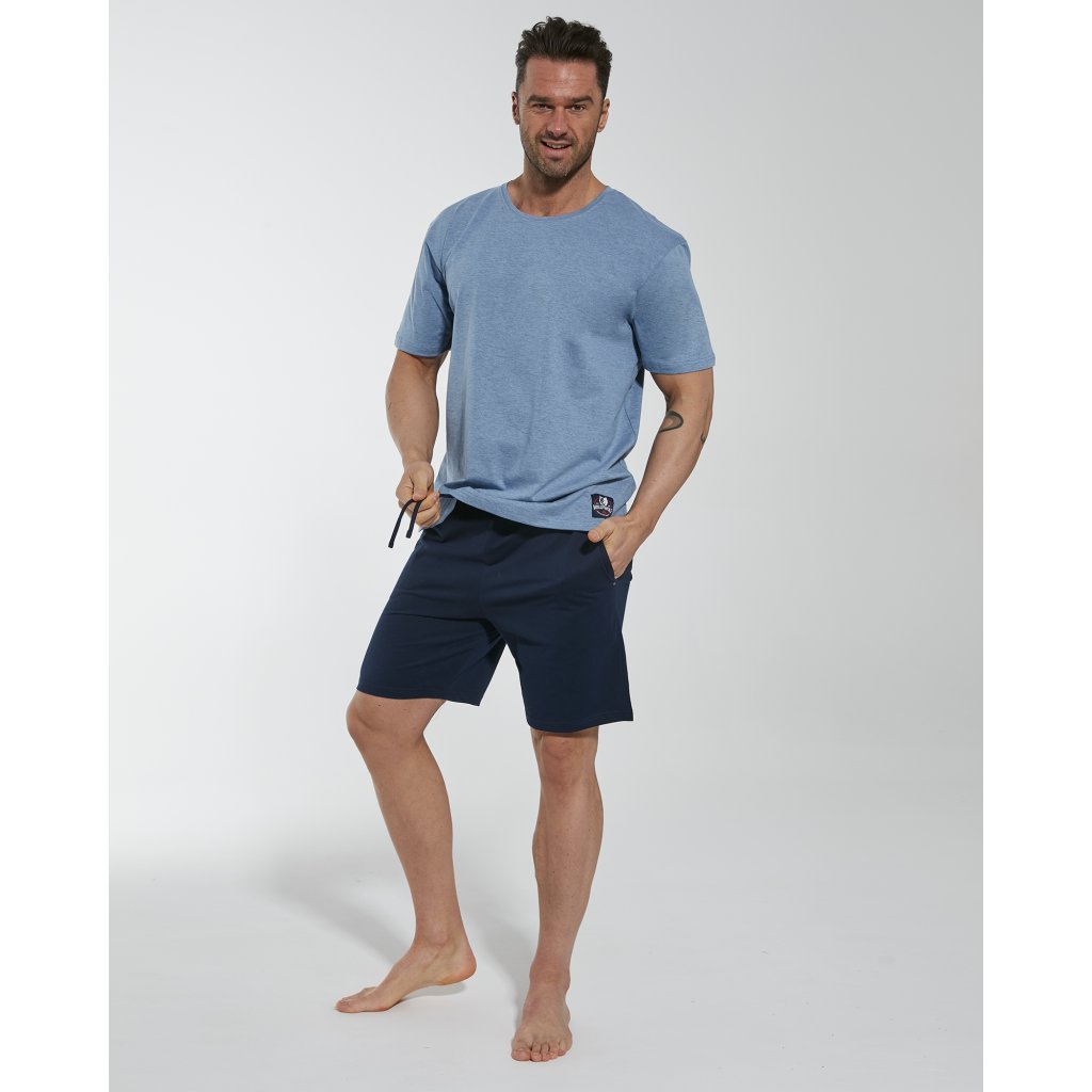Pánské pyžamo z vysoce kvalitní bavlny, krátký rukáv u triko s kulatým výstřihem a melanžovým melírem, jednobarevné šortky. Složení: Triko - 92% bavlny, 8% polyester Šortky - 100% bavlna.Doplňkové parametry