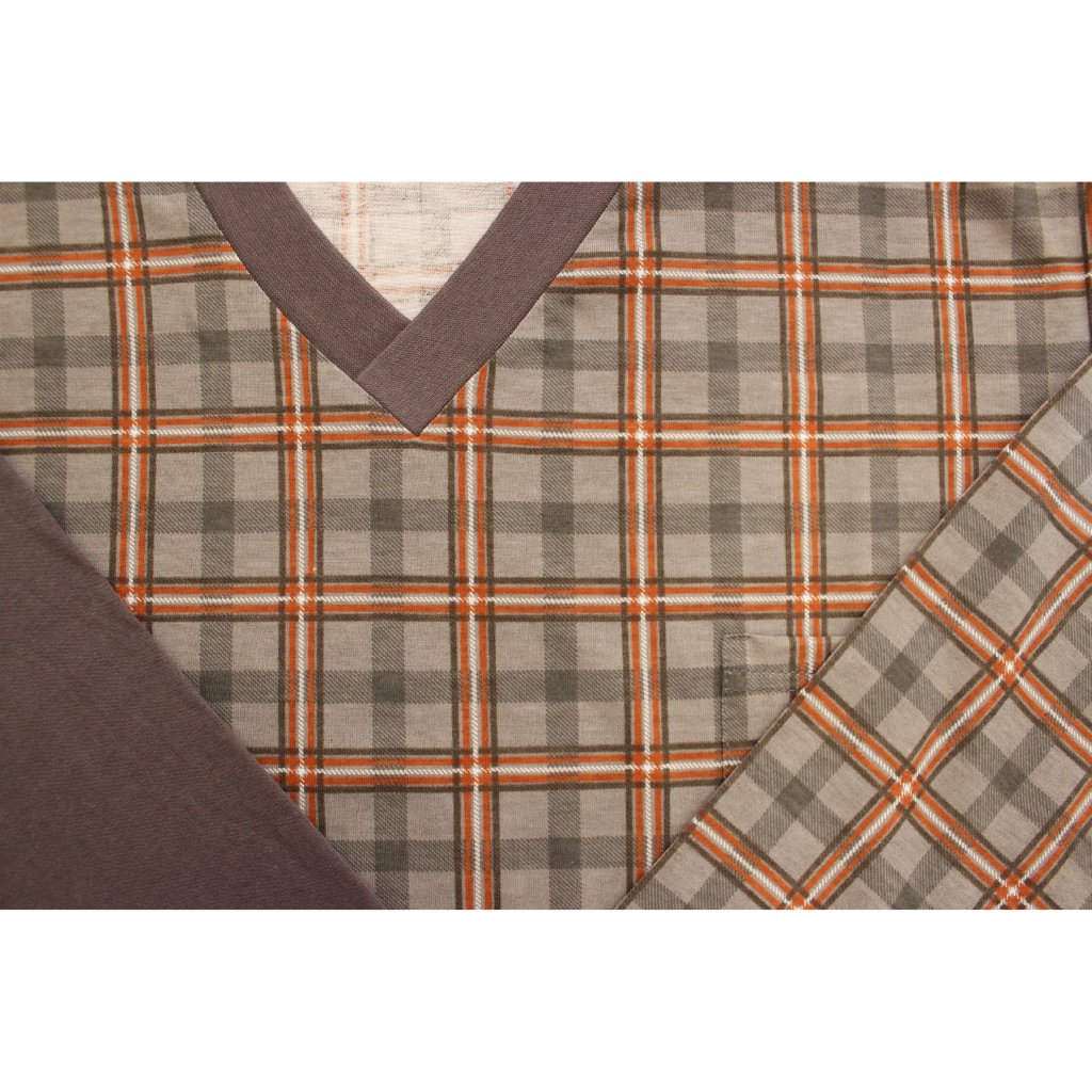 100% bavlněné pohodlné pánské pyžamo KÁJA z kolekce Lonka® tvoří kostkované tričko s dlouhým rukávem a našitou kapsičkou a dlouhé jednobarevné kalhoty. Pánské pyžamo je maximálně pohodlné, stálobarevné a drží si svůj tvar.