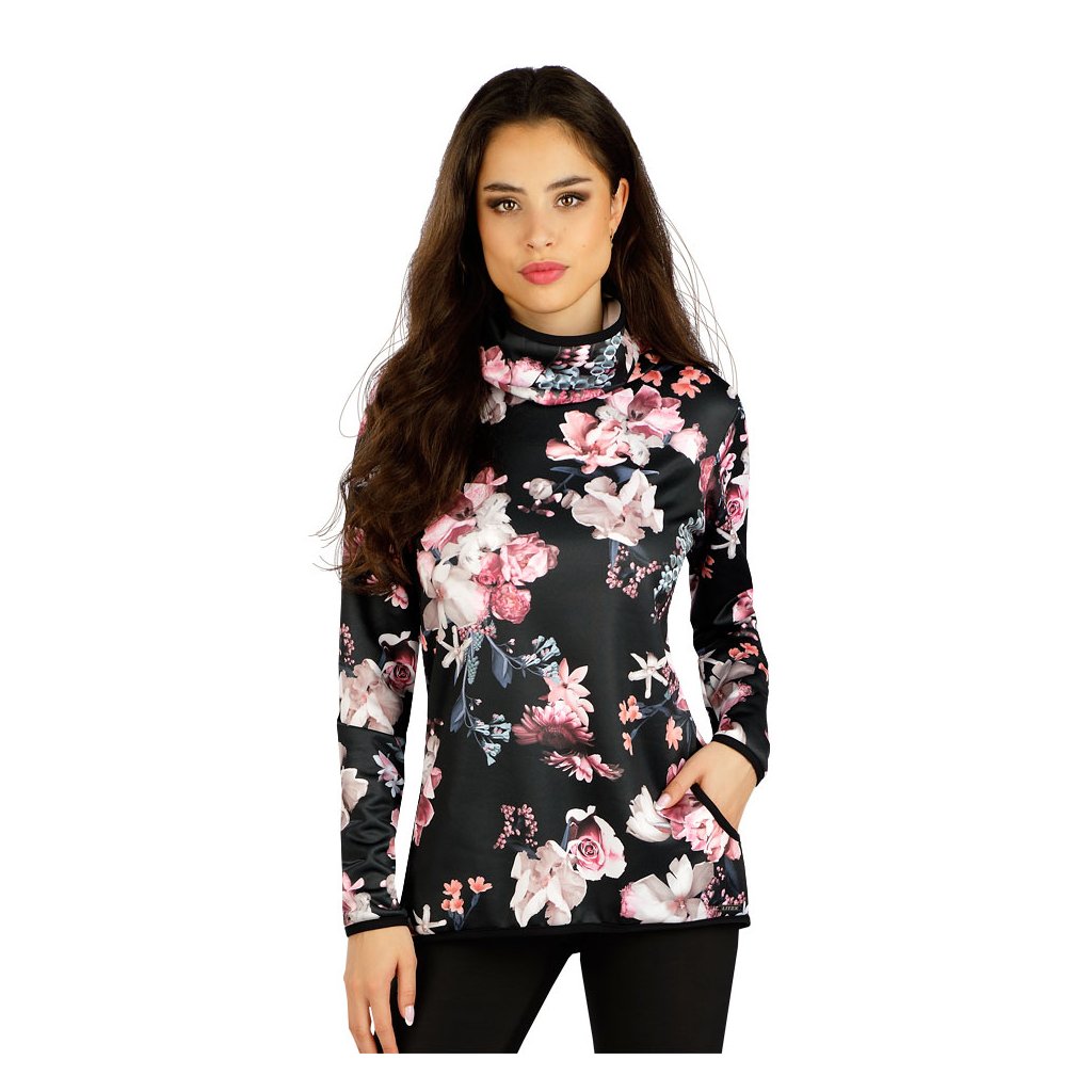 Vysoký shrnovací rolák. Praktické boční kapsy. Výrobky z polyesterových vláken velmi dobře drží tvar, mají výborné termoizolační vlastnosti, jsou prodyšné a lehké. Jejich údržba je velmi snadná. Pružný materiál v krásném květinovém tisku s příjemným vnitřním počesem. " 100% Polyester tisk + černá S, M, L, XLDoplňkové parametry
