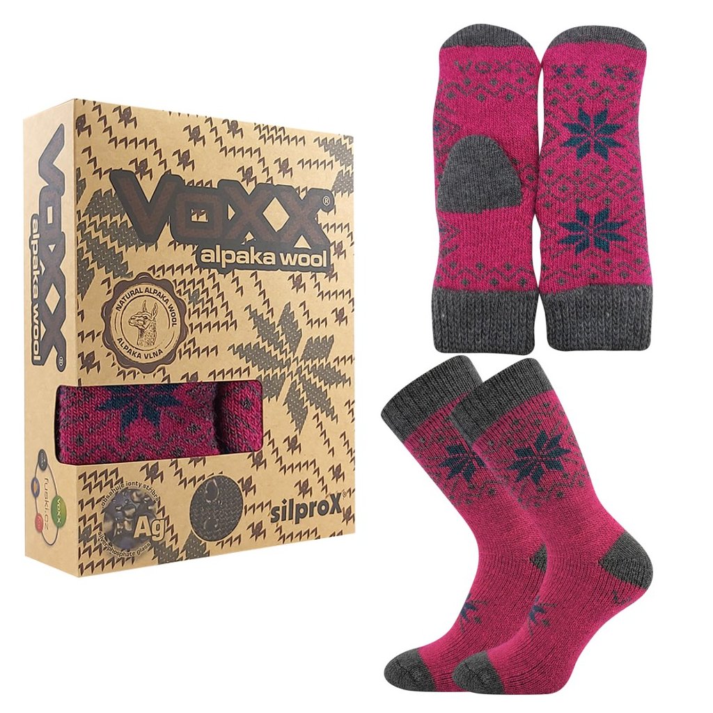 Sada zimních ponožek a pletených palčáků ALTA SET z merino vlny a alpaky MAGENTA