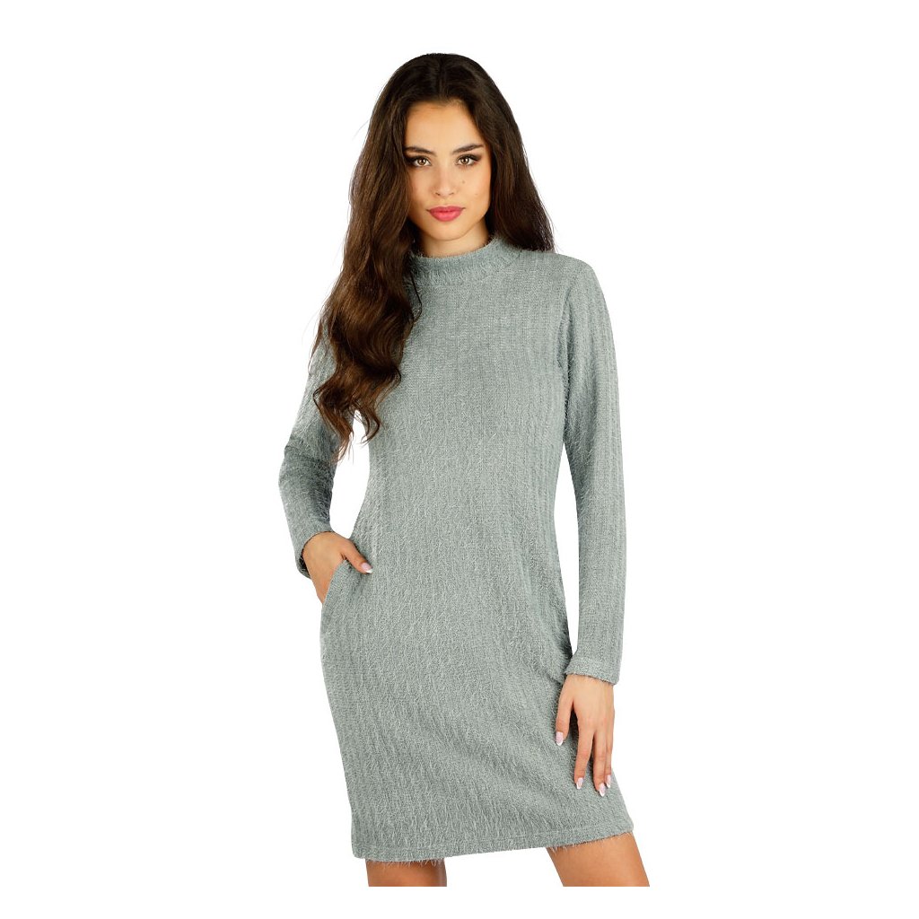 Stoják. Boční praktické kapsy. Přiléhavý střih. Originální vzhled pleteniny s plastickým vzorem a hebkým, příjemným omakem. Délka šatů cca 90 cm. 100% Polyester 116 šedá S, M, L, XLDoplňkové parametry