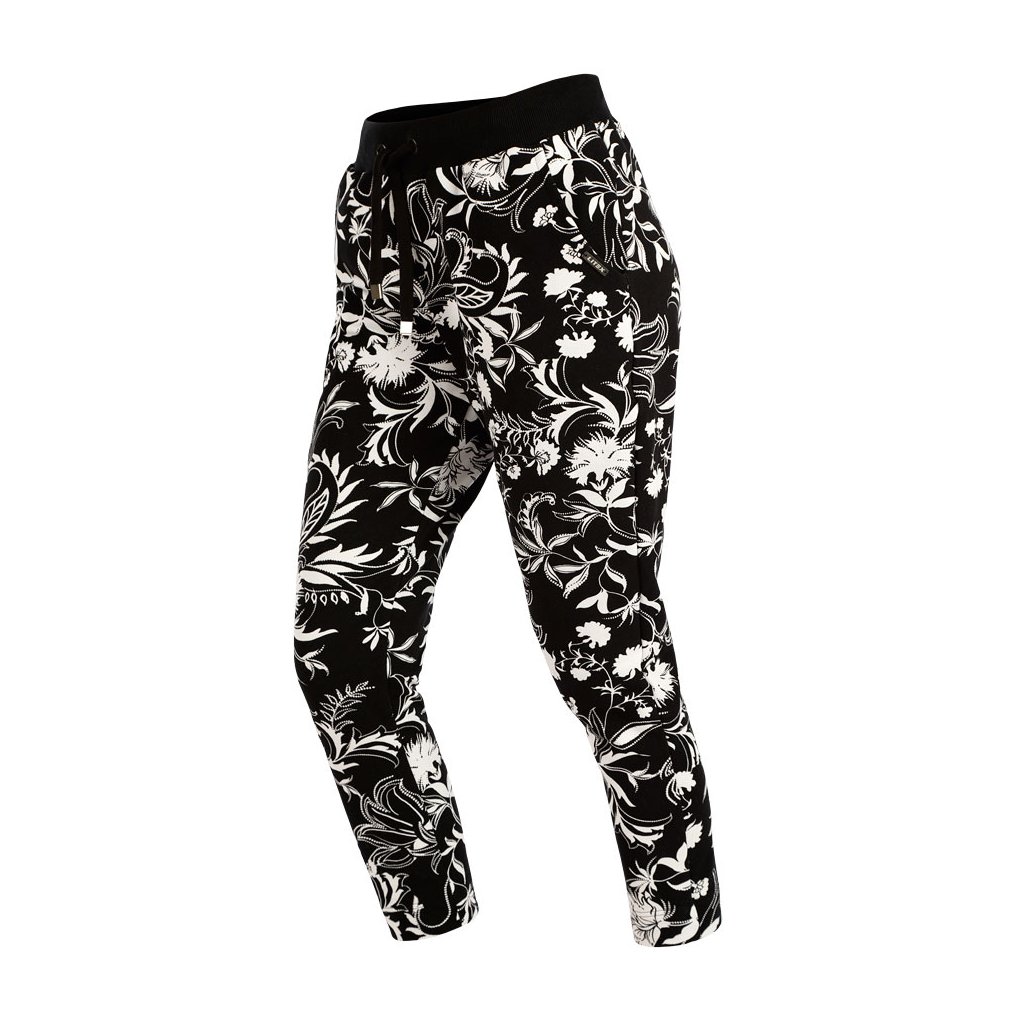 V pase pružný lem a černá tkanice se stříbrnými koncovkami na případné stažení. Praktické boční kapsy. Bavlna s příměsí elastanu poskytuje maximální komfort při nošení. Materiál je měkký a příjemný na omak. Tyto kalhoty výborně doladí Váš sportovně elegantní oufit. 92% Bavlna + 8% Elastan černobílý tisk + černá S, M, L, XL