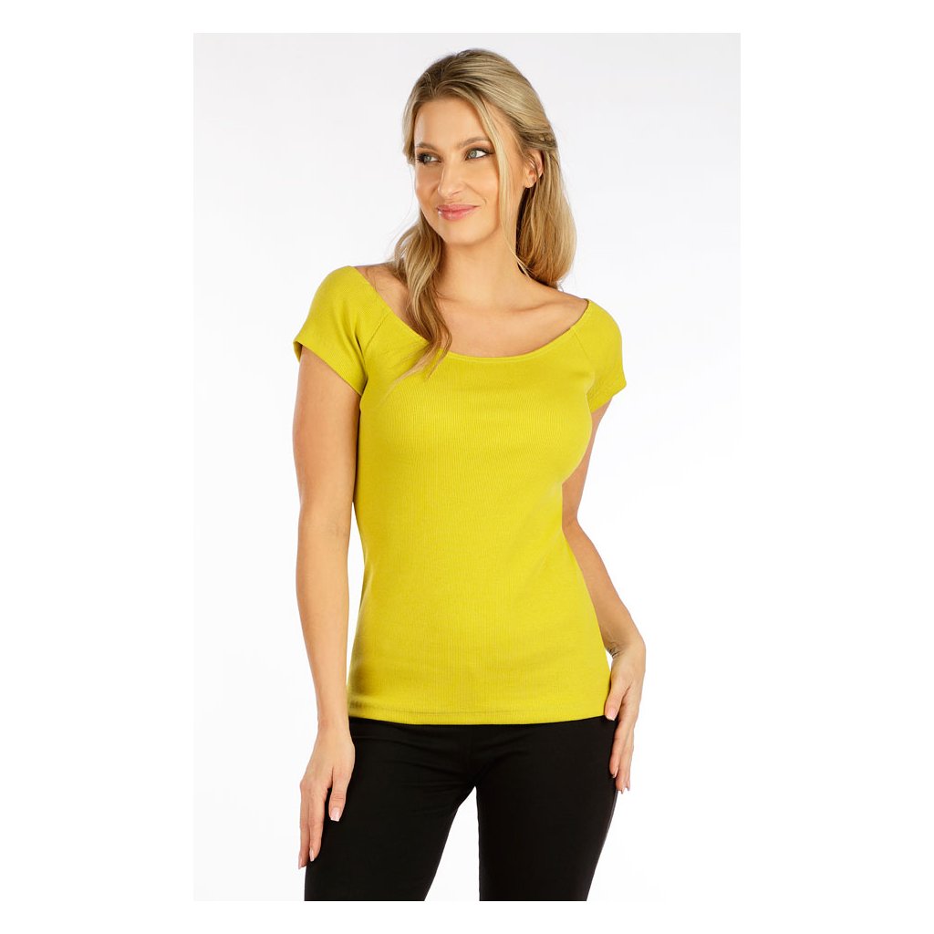 Jednoduchý design trika s oblíbeným lodičkovým výstřihem. Žebrový úplet s vysokým obsahem bavlny zaručuje prodyšnost a maximální komfort při nošení. Praktické víceúčelové triko. 95% Bavlna + 5% Elastan 104 žlutozelená S, M, LDoplňkové parametry