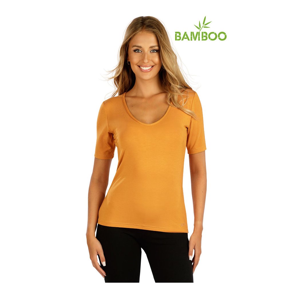 Přiléhavý střih s rukávem k lokti. Hlubší kulatý výstřih. Bambusové vlákno je přírodního původu s antibakteriálními vlastnostmi, proto je vhodné pro osoby s citlivou pokožkou. Příjemný elastický úplet, který udržuje stálou tělesnou teplotu. 95% Viskóza Bambus + 5% Elastan 190 tmavě hořčicová S, M, L, XLDoplňkové parametry