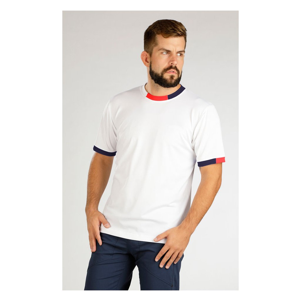 Modro - červený lem v průkrčníku a v délce rukávu. Vysoce kvalitní funkční materiál zaručuje vysoký komfort při celodenním nošení. Materiál je velice lehký, prodyšný, pružný a rychleschnoucí. Vhodné pro aktivní sporty. 94% PES coolmax all season soft'tec + 6% Elastan/Lycra 100 bílá + červená + královská modrá M, L, XLDoplňkové parametry